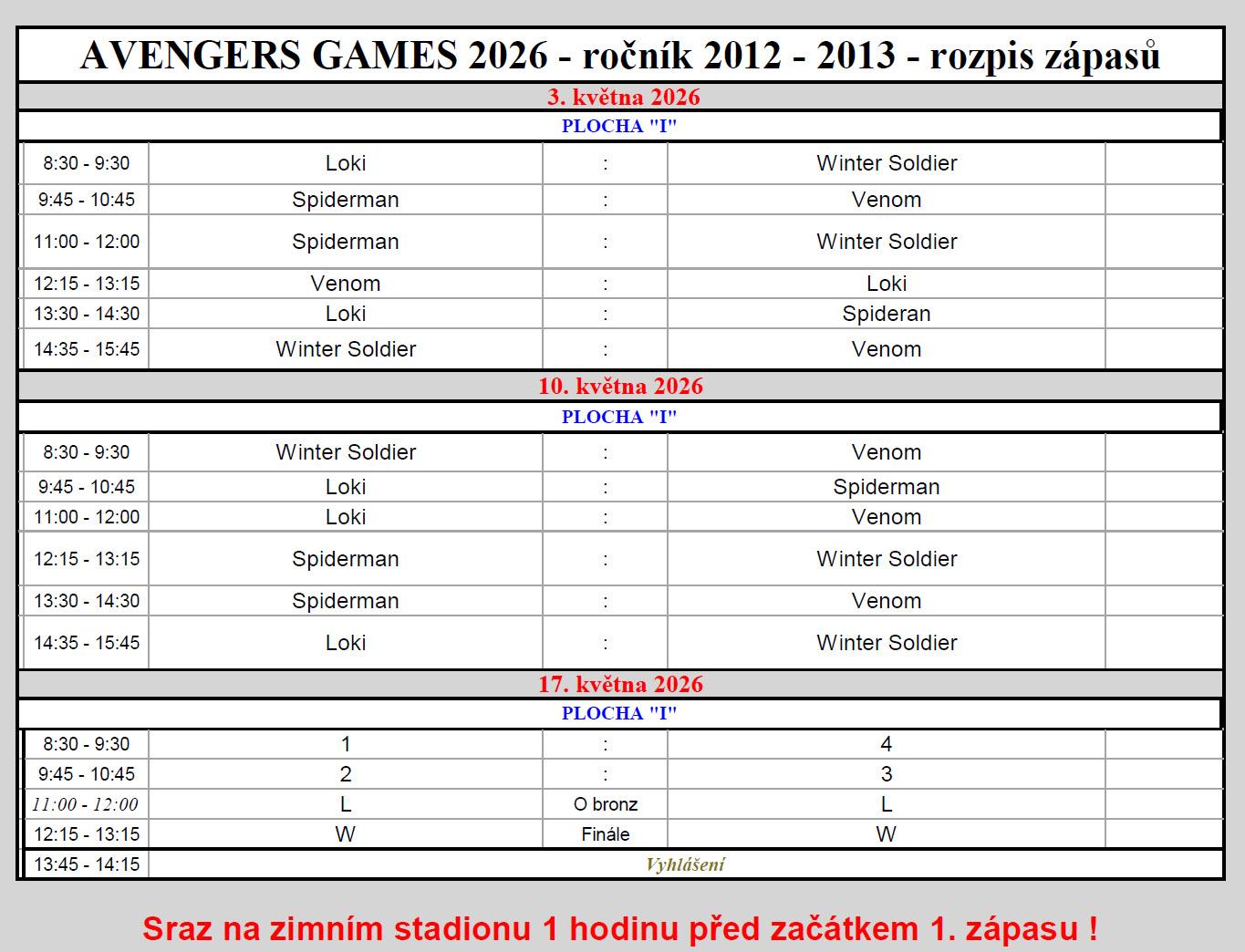 Propozice - Avengers Games 2026